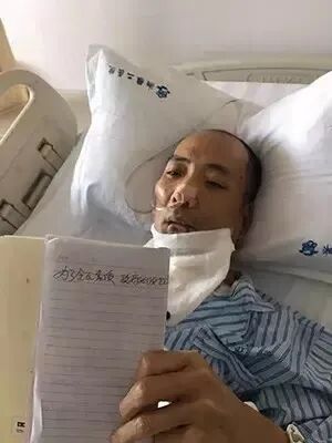 一位被切除了软腭与三分之二的舌头的槟榔受害者,哭着在病床上写下了“为了全民素质,政府必须严厉打击”这句话。
