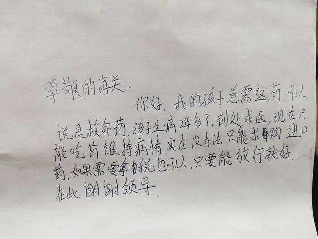有位绝望的母亲甚至写了一封请求书,附上病例后一起传给了海关,苦苦哀求海关放行。
