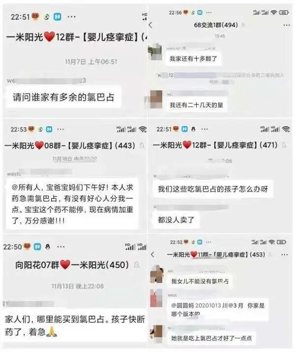 很快,铁马冰河发现,在各个抱团取暖的癫痫患儿病友群里,无数人都在苦苦寻求氯巴占的购买渠道。