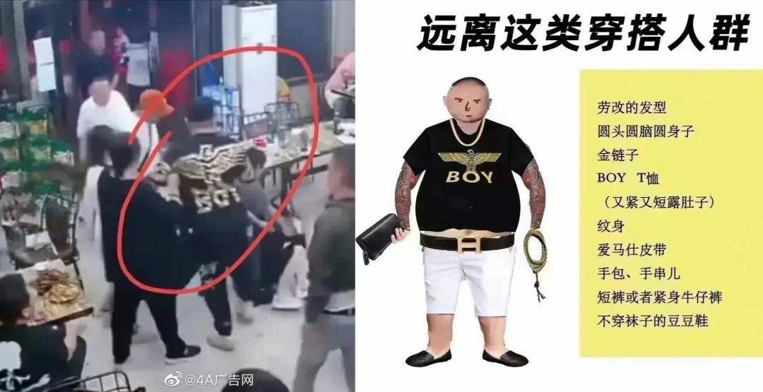 被施暴者青睐,品牌就突然有了原罪。一张广为流传的“危险人群示意图”显示,穿BOY就是混混的一大特征。