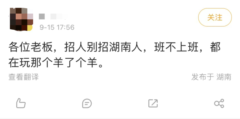 有人发微博开玩笑:各位老板,看看你们的湖南员工吧!班不上了,全在玩羊!