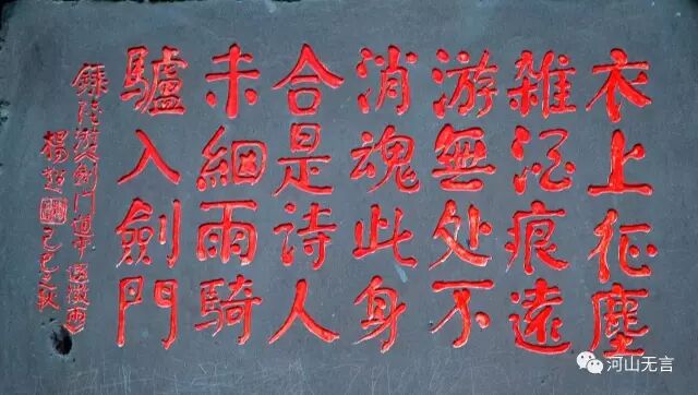宋代诗人陆游的诗《剑门道中遇微雨》碑刻。范晓摄影