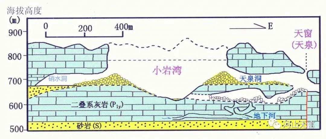 天泉洞最下一层具有暗河的溶洞(据中英联合洞穴探险队,1992)