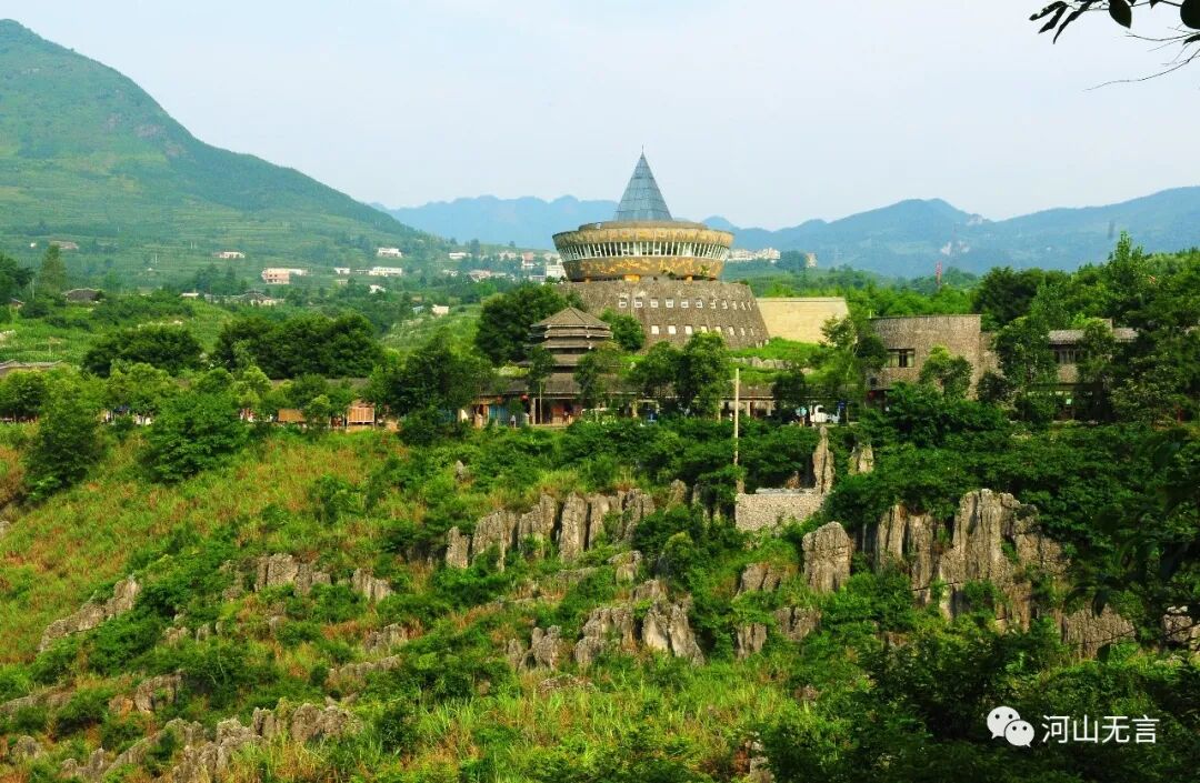 具有苗族民居风格的公园大门门楼(上图),以及包含苗族头饰元素的地质公园博物馆及游客中心(下图)。以上两项建筑设计均出自于已故的国家著名风景园林专家、四川省城乡规划设计院建筑师熊世尧先生之手。范晓摄影