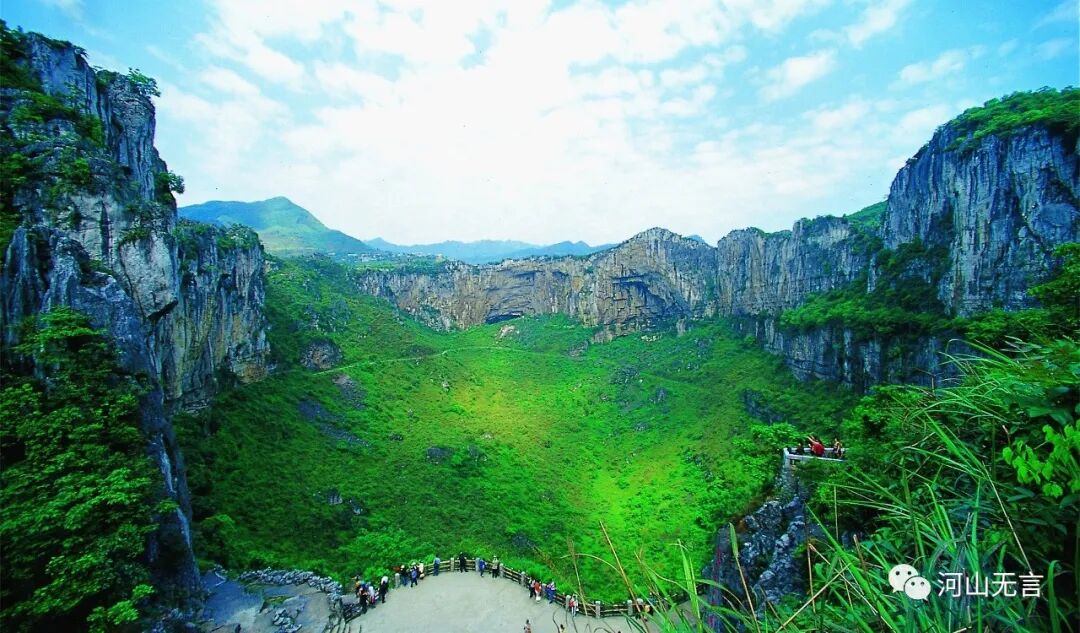 兴文世界地质公园的主体地质景观——小岩湾天坑,世界级的大天坑。原来被称为“大漏斗”,中国地质学家通过研究认为这是不同于漏斗的另一类喀斯特地貌,并将其命名为“天坑”。