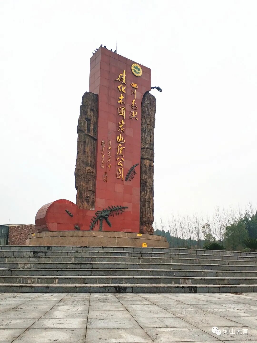 四川射洪硅化木国家地质公园主碑。碑体采用了侏罗纪的英文“Jurassic”的首字母J的造型。