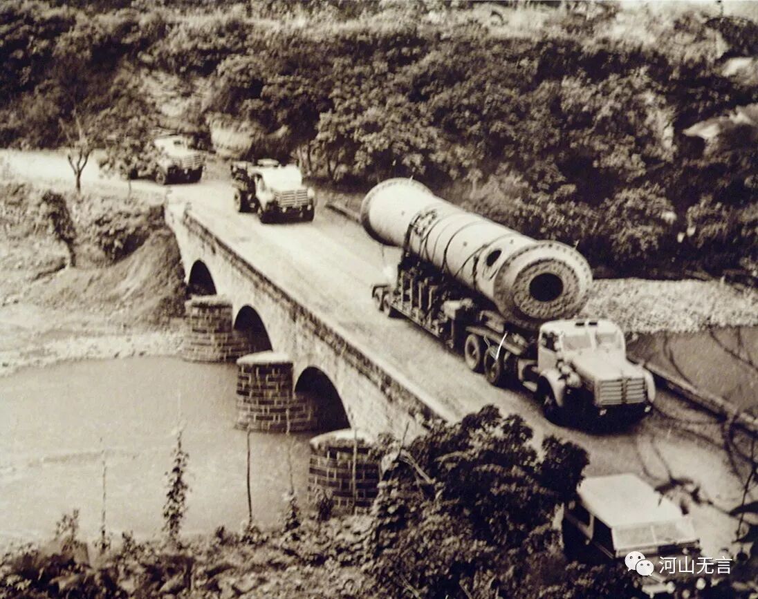 攀钢建设初期运送设备的车队。据攀枝花博物馆