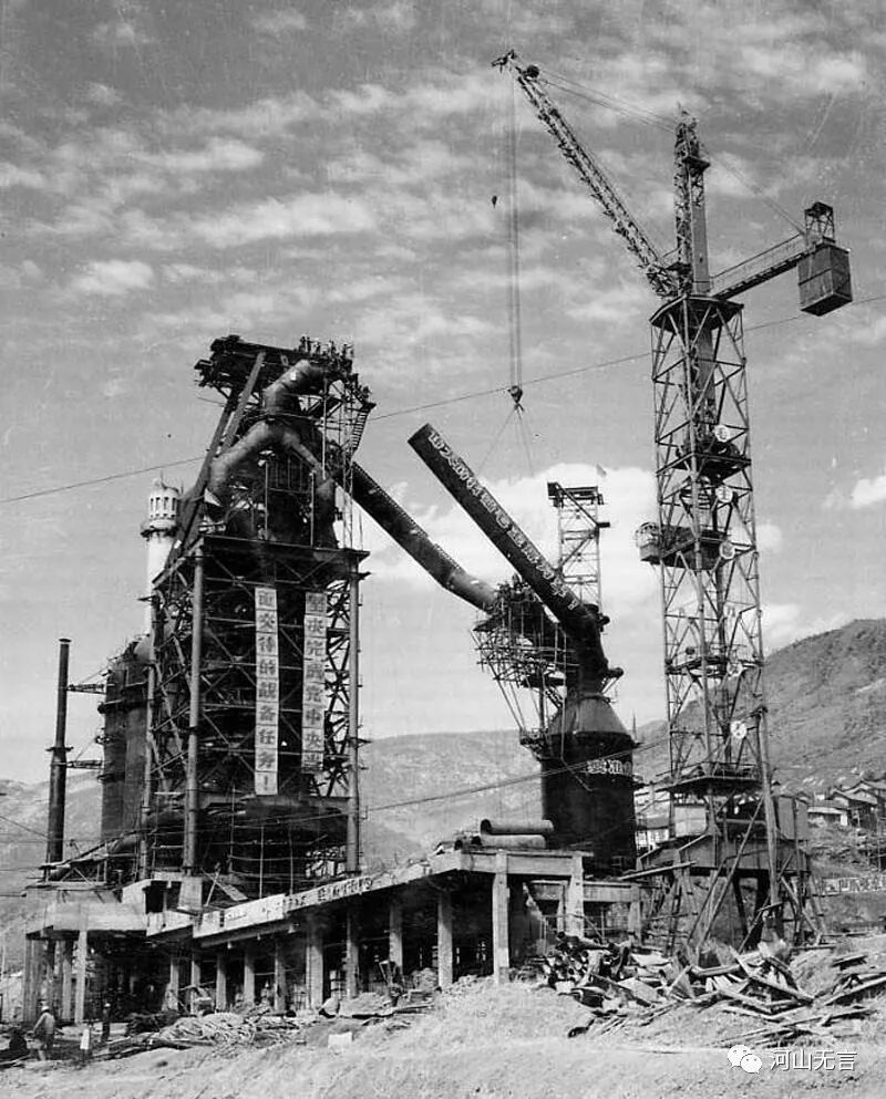 20世纪60年代,建设中的攀钢一号高炉。据攀枝花博物馆