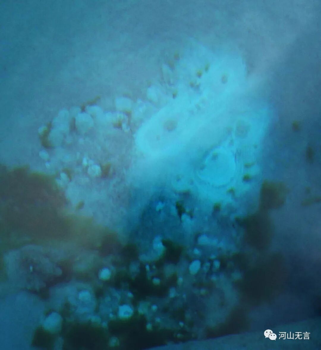 由水面向下拍摄的九寨沟五花海湖底的喀斯特涌泉群,泉群沿湖底的裂隙呈带状延伸,泉口有灰白色的钙华沉积,并有大量上冒的二氧化碳气泡。说明九寨沟的湖水有相当部分是由地下水通过喀斯特泉补给。范晓摄影
