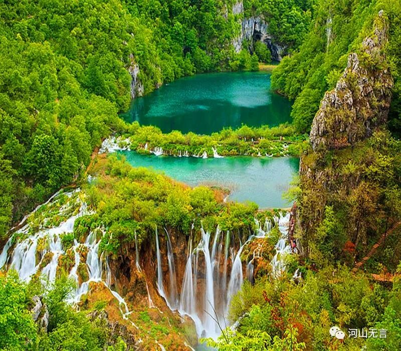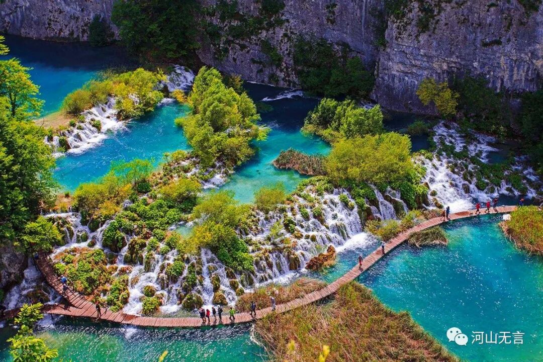 克罗地亚普里特维采(十六湖)的钙华堰塞湖与钙华瀑。据网络