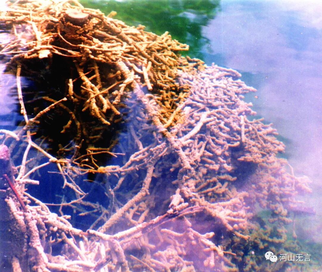 九寨沟的湖泊中,依附植物的茎干形成的钙华沉积。范晓摄影