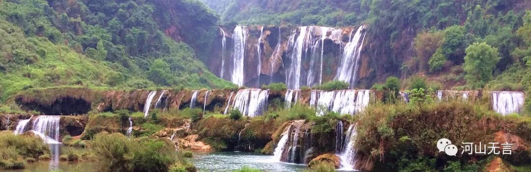 云南罗平南盘江支流上的九龙瀑布及其钙华瀑、钙华堰塞湖。处在滇东高原向广西丘陵过渡的地形斜坡带上。刘建民摄影