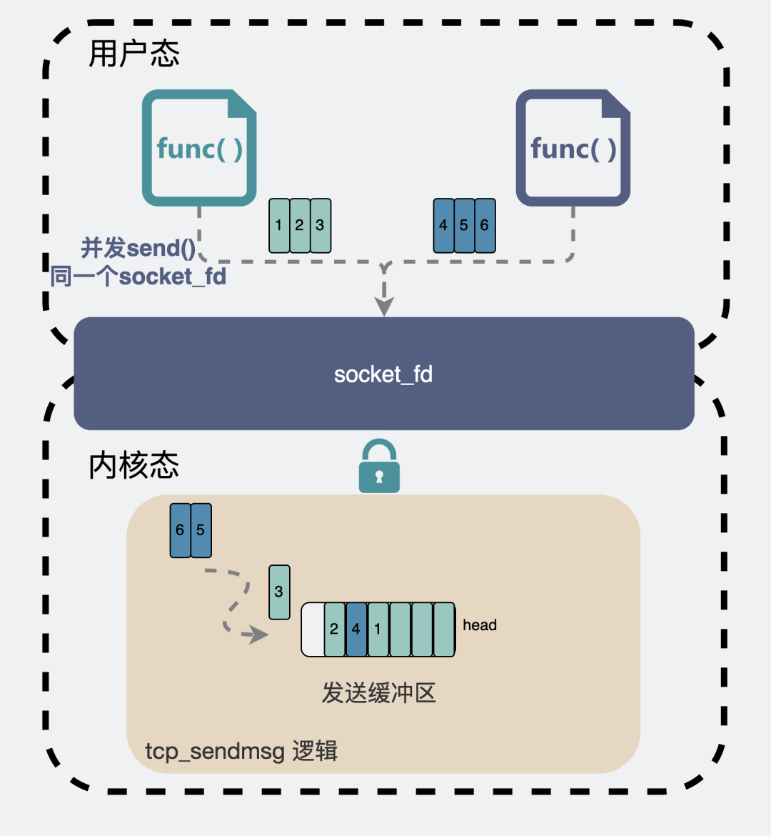 那既然是串行化,我完全可以在在业务代码里为每个socket_fd配一个队列来做,将数据在用户态加锁后塞到这个队列里,再单独开一个线程,这个线程的工作就是发送消息给socket_fd。