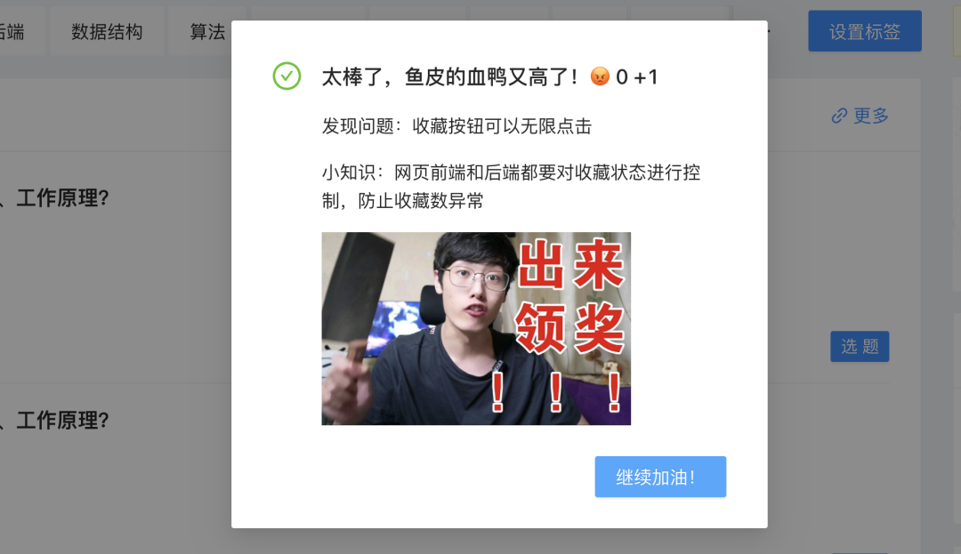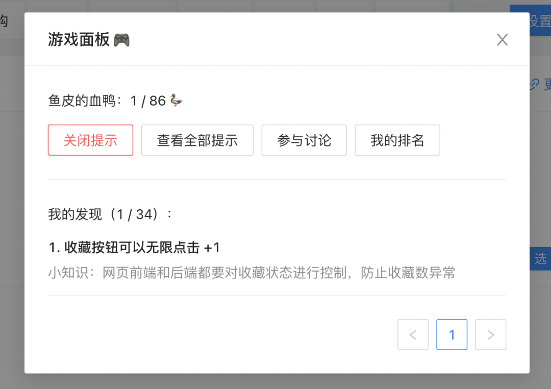 每当你找到一个 Bug 或者攻击成功后,都会帮助鱼皮提高血鸭值(类似得分),根据找到 Bug 的难度和质量,可以得到 1 - 5 分(总分 80 多:
