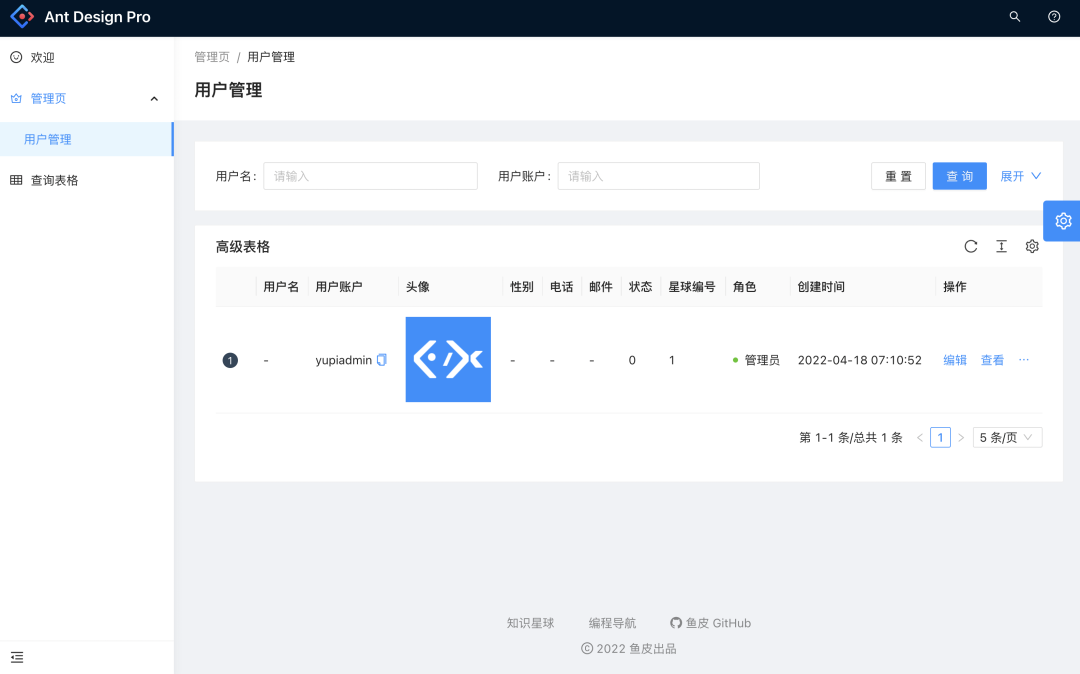 由于是星球内的第一个项目,决定带大家做一个企业中最最最常用的系统 —— 用户中心 ,其实就是一个简单的 “用户管理系统” ,实现了用户注册、登录、查询等基础功能。如图:
