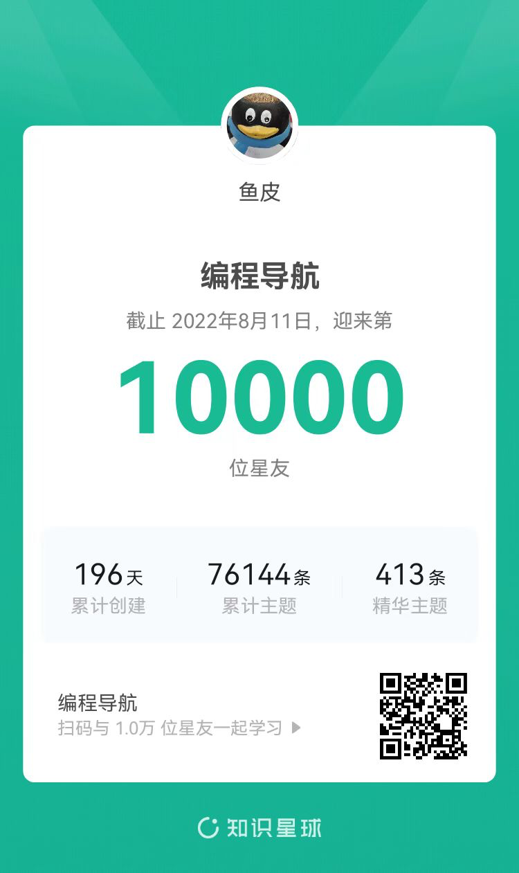大家好,我是鱼皮。经过半年多日以继夜的努力,我的编程知识星球人数终于突破了 10000 人!