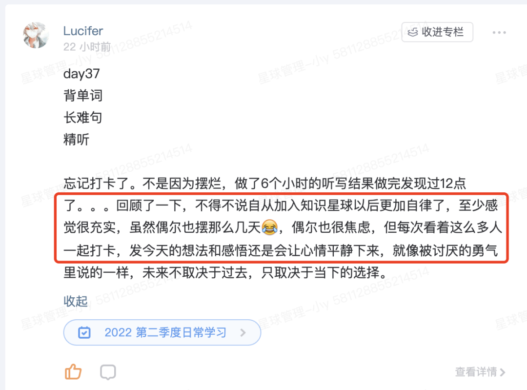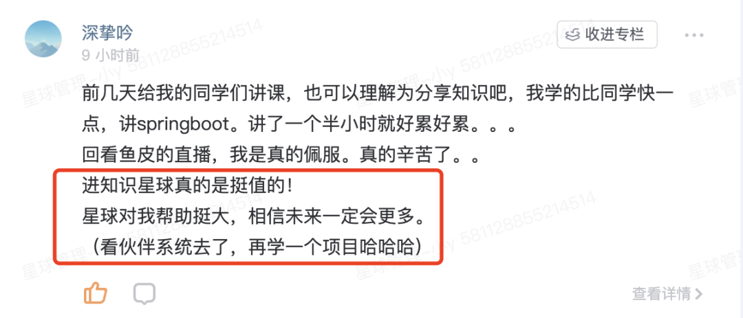 以下是一些同学的星球学习感受: