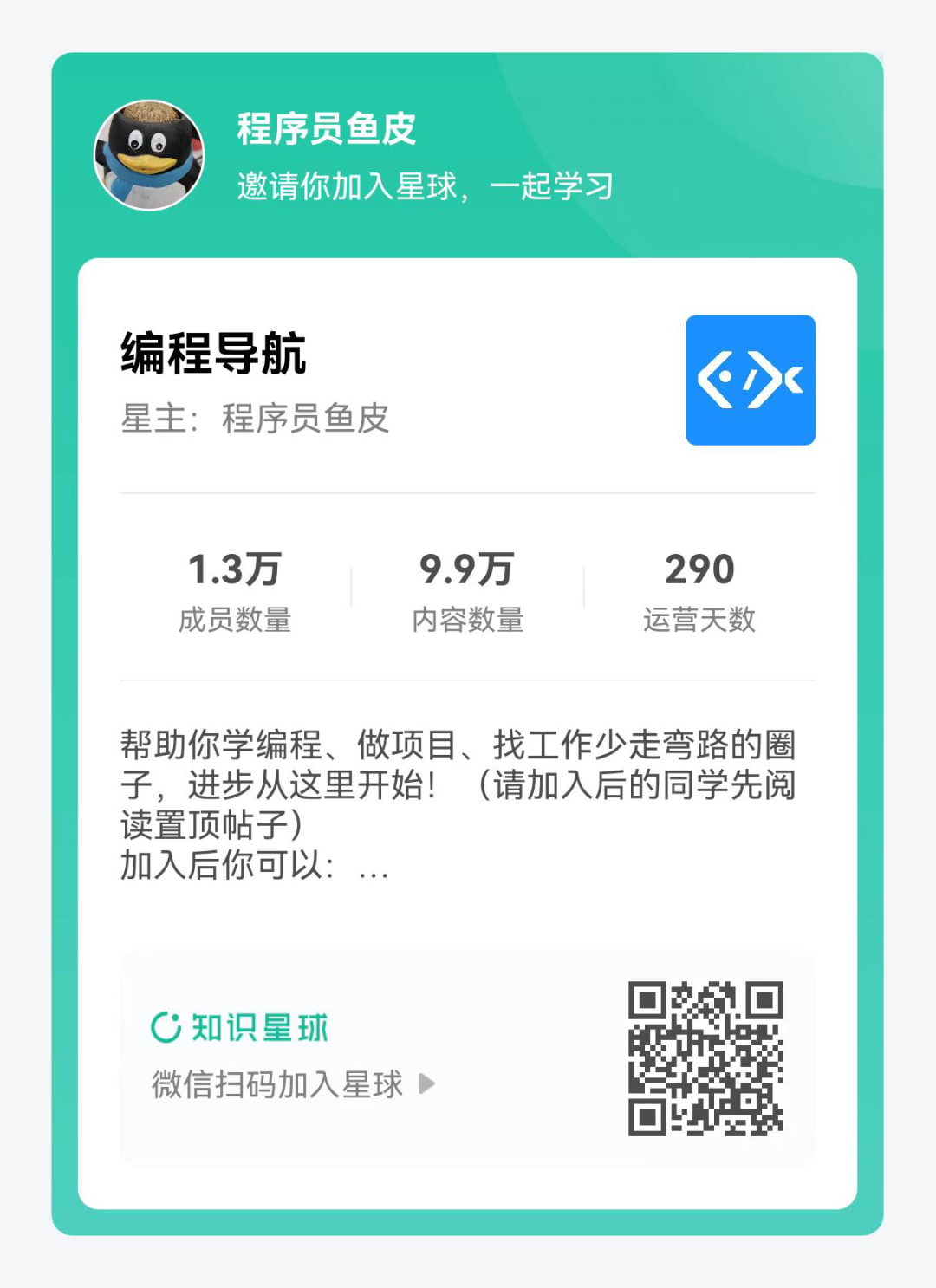 最后声明,这个项目是我在自己星球里带大家做的完整项目,如果大家想要学习的话,欢迎加入我的 编程知识星球 —— 一个帮助你学编程、少走弯路、手把手带你做项目的编程学习圈子。