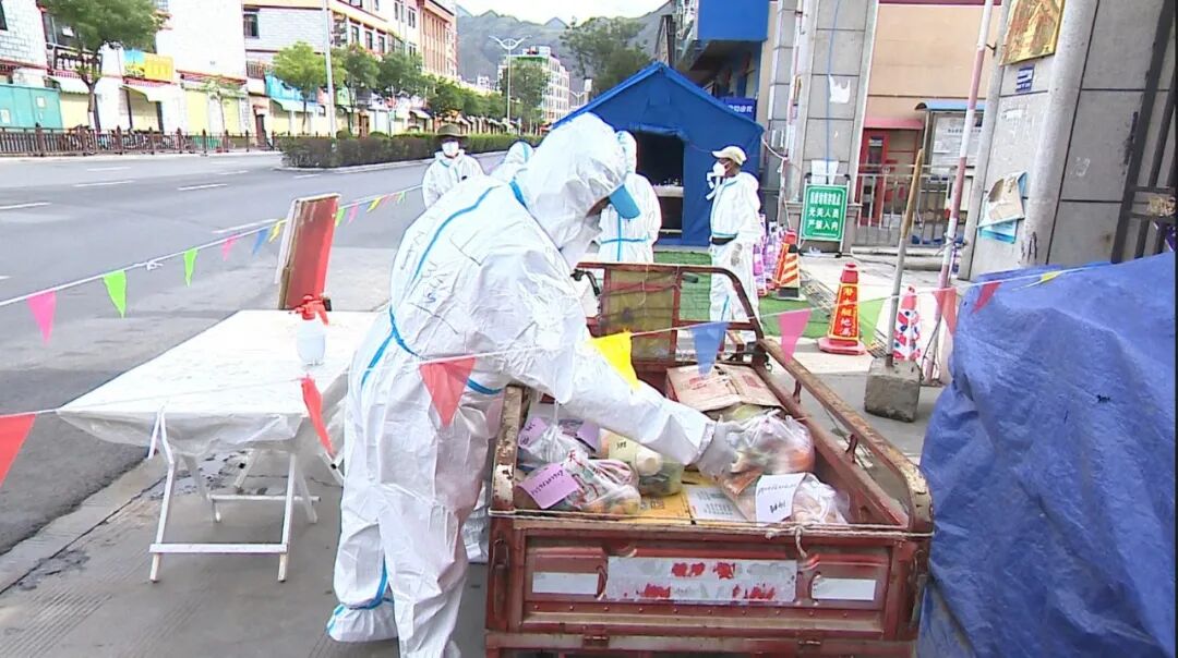 防疫工作人员正在对打包好的