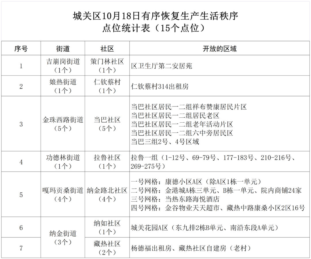 附件:点击放大下方图片查看城关区10月18日有序恢复生产生活秩序的15个点位