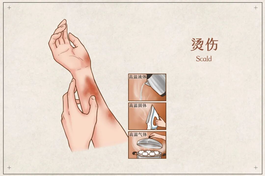 1、烧、烫伤后,应该远离热源,小心脱掉烧、烫伤处的衣物,让伤口裸露。如果有衣服粘在被烧、烫伤的部位,不要强行撕脱,要用剪刀小心剪开衣服,或直接去医院。2、用流动的自来水冲洗伤口20~30分钟,冲洗的水温10℃~20℃,不能低于8℃。3、自来水冲洗后,如果被烫伤后的皮肤完整没有破损,可以用有舒缓作用的芦荟胶涂在受伤处。注意:这里我们说的是专业制作的芦荟胶,而不是直接从老母亲的花盆里拔两根芦荟下来,没有炮制过的生芦荟可能引起过敏,还可能有细菌引起感染!4、烫伤如出现水泡,冲洗后用医用纱布覆盖包扎。如果水泡较小,几天后会自行吸收。如果水泡较大,千万不要自己把水泡捅破,需要去正规医院,在严格的无菌消毒下低位引流。注意:如果是处在煤气爆炸、油锅起火爆炸等产生高温气体的情况下,即使全身没有严重的外伤,也一定要注意是否吸入灼热的空气,造成吸入性气道烧伤。气道烧伤的早期表现不一定是气道梗阻,可能会出现咽喉部的灼热、刺痛感,需要尽快到医院就诊,避免症状加重,造成致命伤害。割伤后,家里老人第一反应是不是往伤口上撒点香灰?没有香灰就从地上抓一把土敷上或者从厨房里挖一点面粉涂上……这些坑人的招数不能要。任何粉剂药物对伤口组织来说,都是无法吸收的异物,敷在伤口上,可能会加剧炎性反应,诱发肉芽肿病变。另外,这些香灰、土没经过消毒处理,敷在伤口上可能会带来难以预知的污染、增加清创难度、让伤口感染化脓,如果其中的细菌进入血液到全身,还会引起败血症。特别是普通土壤内可能含有破伤风梭菌,这简直就是自己给自己“下毒”。血慢慢渗出来,颜色呈暗红色,这种一般是毛细血管/浅表静脉出血,可以通过局部压迫5~10分钟,或使用创可贴,就能够有效止血。血流得比较多,颜色呈鲜红色,这种一般是小动脉出血,可以用手指按压伤口近心端,或利用身边可获取的材料进行简单加压包扎止血(压力以看不到伤口处持续出血为准),再到医院做下一步处理。包扎时,要用干净的纱布或手帕、毛巾等压住伤口,再用绷带或长条状的布类物施加一定的压力,环形或螺旋形包裹住伤口。如果伤口深、出血迅猛,压迫后还没法止血,需要赶紧去医院。同时可以用止血带止血。上肢出血一般绑在上臂上1/3处,下肢出血一般绑在大腿中段。绑的时候止血带和皮肤之间要用折叠的毛巾作为衬垫,不能直接扎在皮肤上;同时,为了防止因肢体远端长时间缺血而导致坏死,一定要记录扎的时间,每隔1小时要松开3~5分钟。如果是被不干净的竹签、玻璃片、钉子等割伤后,除了止血处理外,还需要考虑是否需要使用破伤风抗毒素或破伤风免疫球蛋白进行被动免疫治疗,当然这个不是你考虑的,医生会帮你判断。