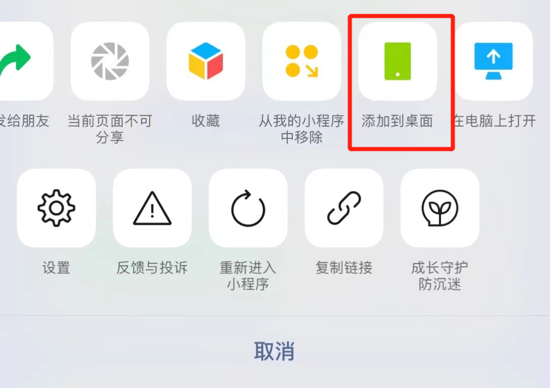 在微信中打开“四川天府健康通”小程序,点击右上角的“…”,点击“添加到桌面” 即可,如下图所示: