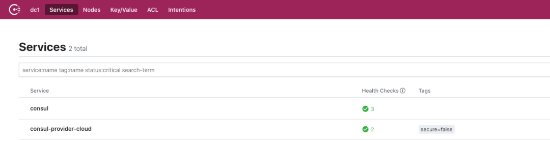 打开Consul 控制台: http://localhost:8900/ui/dc1/services