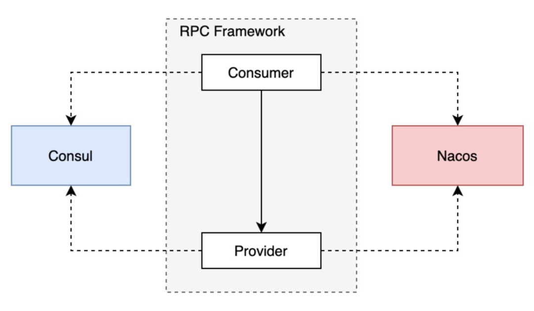 服务框架在过度期间将服务同时注册到 Consul 和 Nacos。过度完去掉对 Consul 的注册和消费。