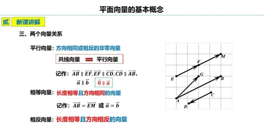 从而明确:平行向量和共线向量是等价的。