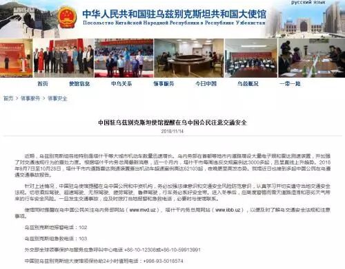 使馆同时提醒在乌中国公民关注乌内务部网站、塔什干内务总局网站,以便及时了解乌交通安全法规和注意事项。
