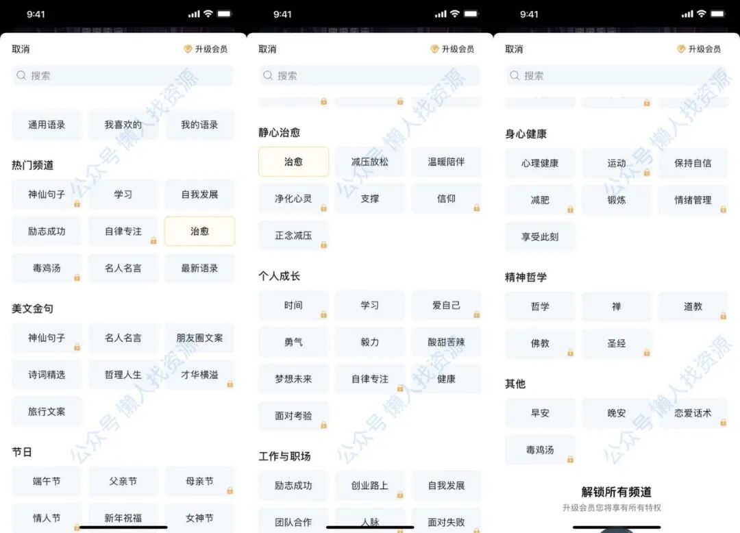 安卓端的小伙伴可以看这个 品言文案 ,已经解锁了会员。