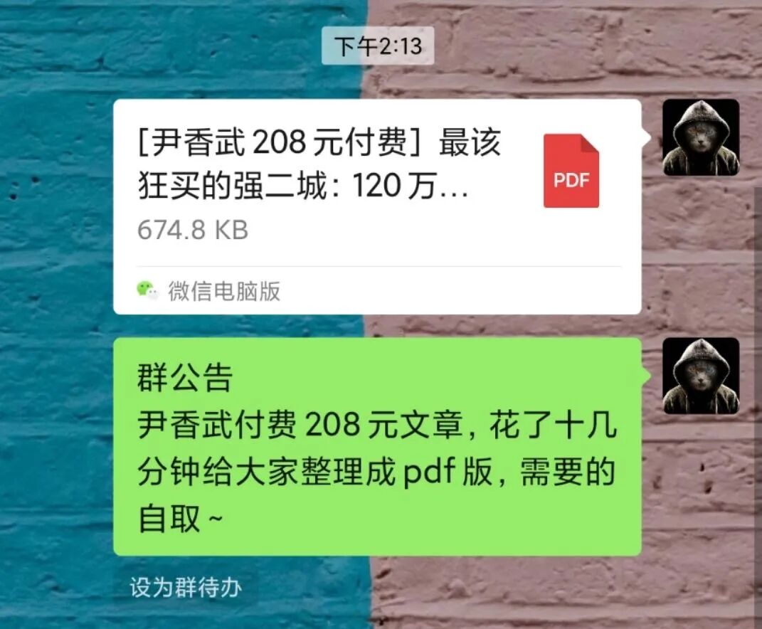 下午花了二十分钟把群友自费208的尹香武的付费文章《最该狂买的强二城:120万直取倍利》手动整理成pdf文档。
