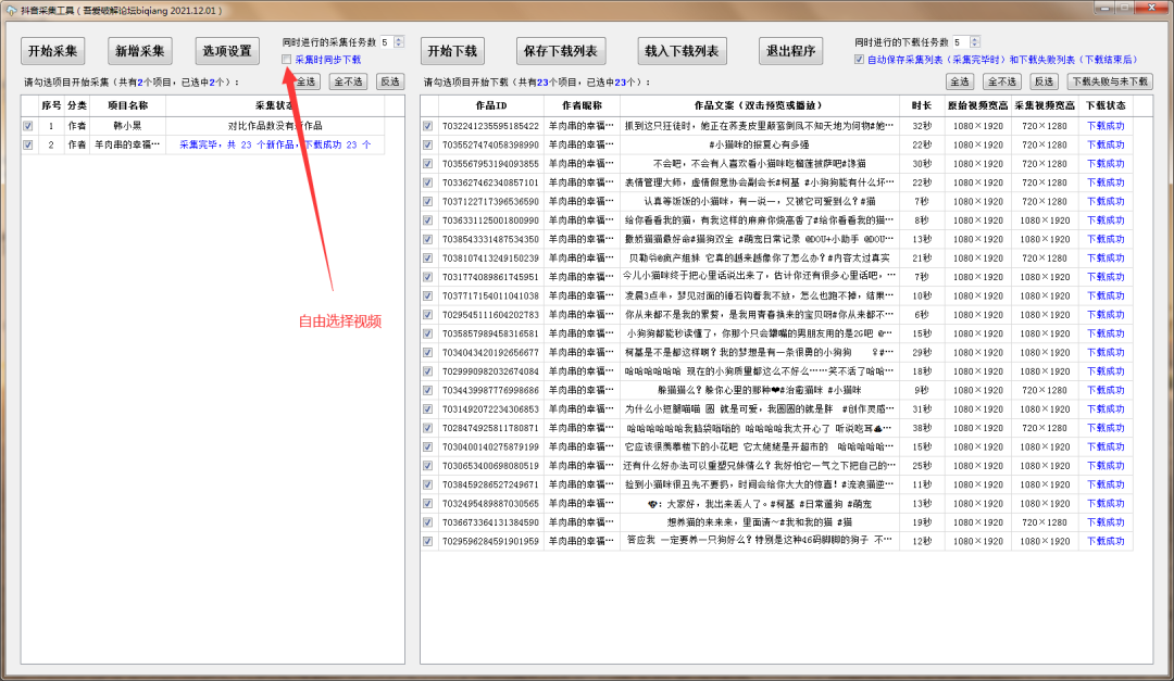 建议关闭 采集同时下载 关闭,关闭后就可以想下哪个就下哪个,比较灵活。