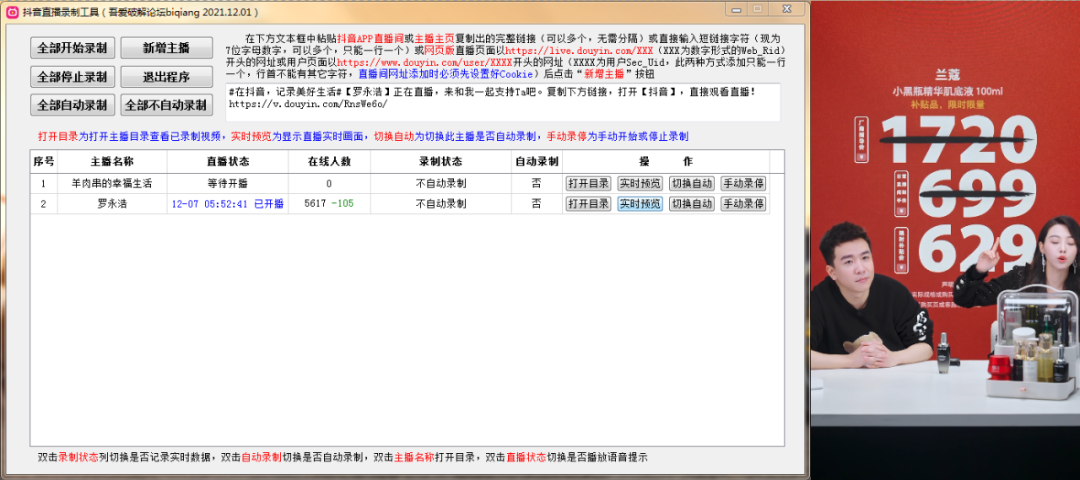 软件还可以批量录制直播,Amazing !