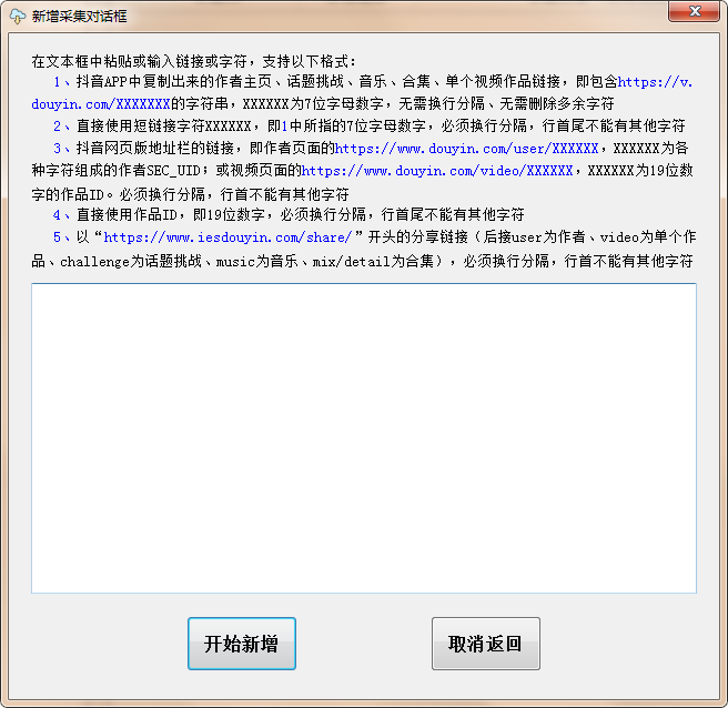 如果要批量下载某作者视频,进入主页分享主页链接,在软件里粘贴后点击 开始采集 就可以。
