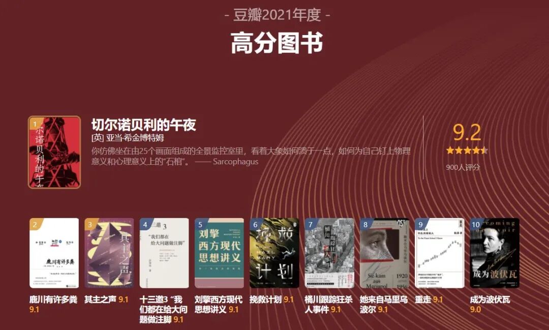 今天偷个懒,来分享一波合集,前几天X瓣的2021年度榜单已经出来。