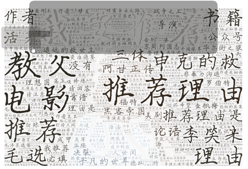 简单做个词云,不过很多朋友没写推荐理由,有空可以修改一下~