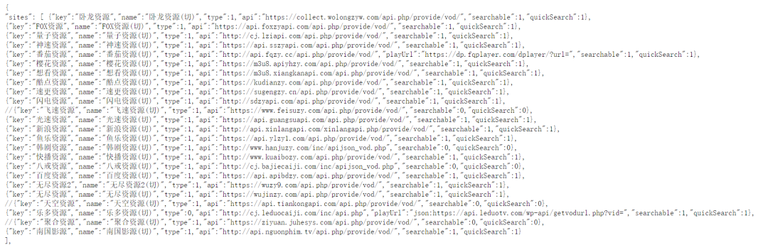 我们注意到浏览器访问链接时可以看到内容是各个影视接口: