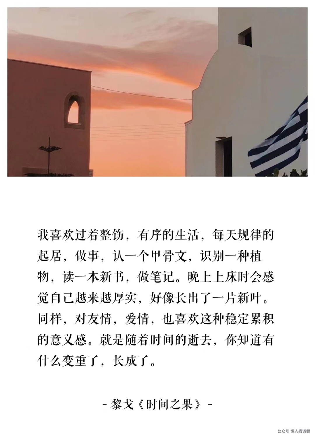 我喜欢过着整饬,有序的生活,每天规律的起居,做事,认一个甲骨文,识别一种植物,读一本新书,做笔记。晚上上床时会感觉自己越来越厚实,好像长出了一片新叶。同样,对友情,爱情,也喜欢这种稳定累积的意义感。就是随着时间的逝去,你知道有什么变重了,长成了。