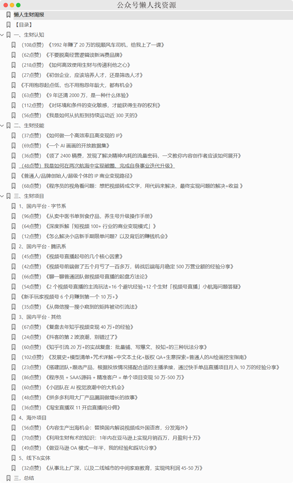 本期的生财周报昨天下午已经分享到「懒人专属群」了。