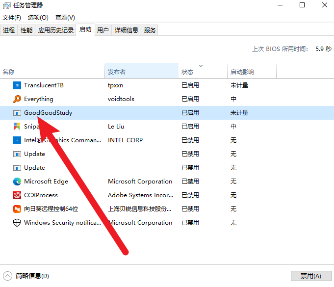要确认是否添加成功,可以到任务管理器里的启动栏看看。