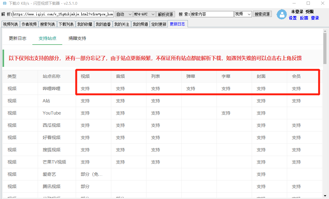 从软件的介绍可以看到,主流的「B站、爱优腾三大佬、西瓜视频、芒果视频、好看视频、YouXube」都支持。