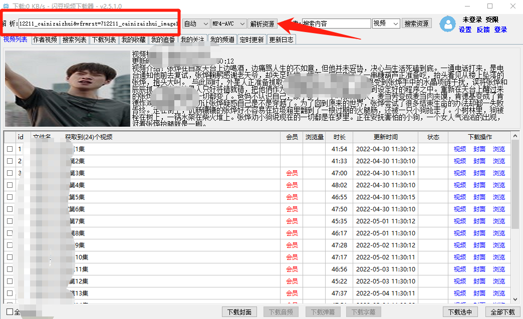 软件的使用也很简单,直接把目标网站平台的链接复制到解析栏里,然后点击「解析资源」就可以下载。
