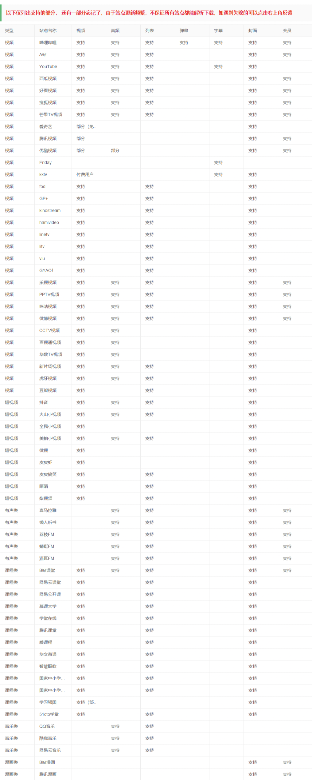 可以看到除了视频,软件还支持「音频,课程,漫画」的下载。