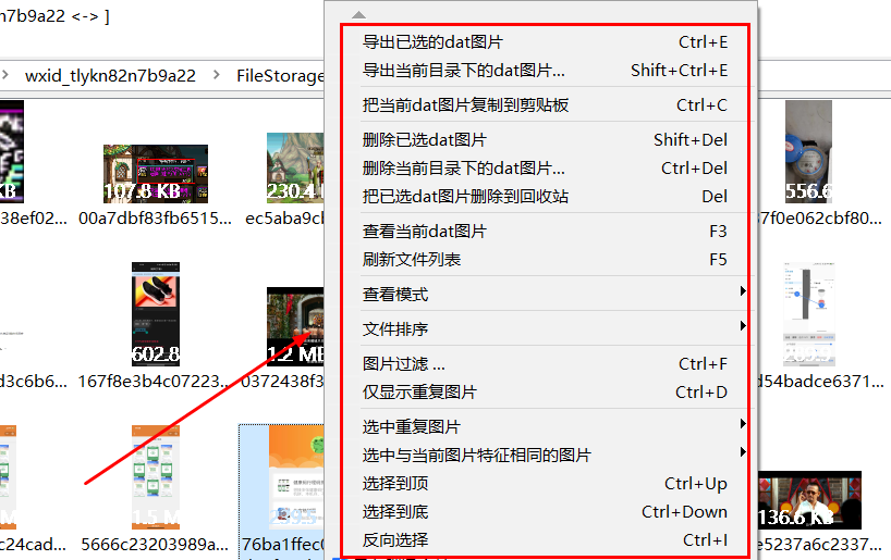 小帅发现WxDatViewer支持图片过滤,于是按照格式,大小等过滤了这个文件夹里的图片