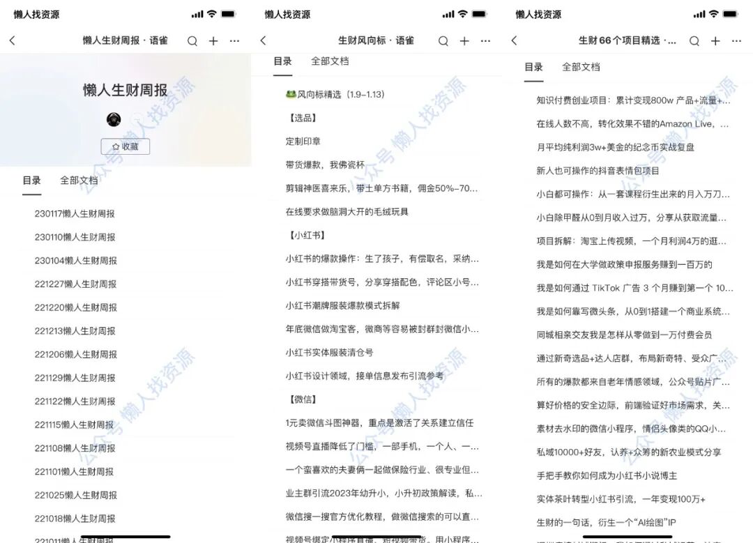 之前的生财的周报合集到q群消息自取(含离线版和在线版合集),小懒还爬了生财风向标(在线版),还有最近售价66的生财项目精选(在线版)