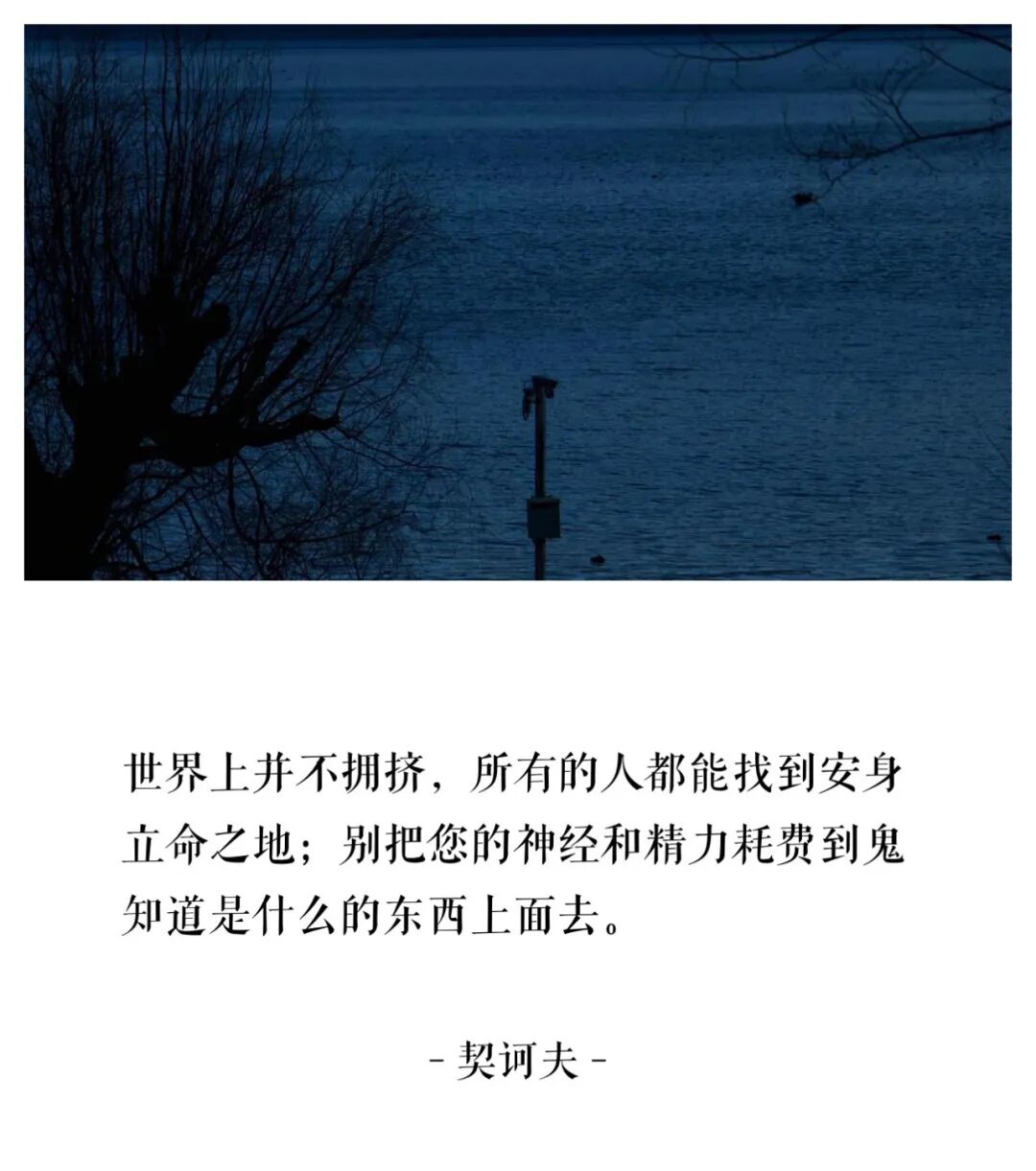 世界上并不拥挤,所有的人都能找到安身立命之地;别把您的神经和精力耗费到鬼知道是什么的东西上面去。