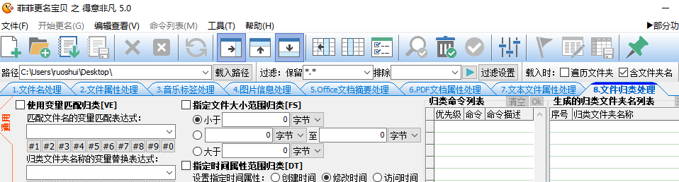 将不同类型的文件,按照文件名,或者修改时间,大小,属性,正则表达式等等来整理到单独的文件夹里。