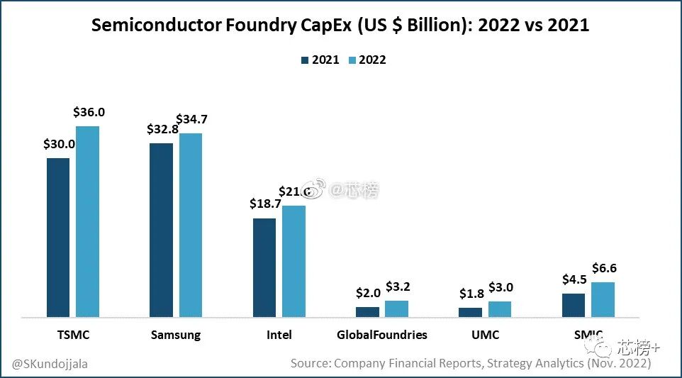 3、资本支出方面,所有主要代工厂都增加了 2022 年的资本支出。
