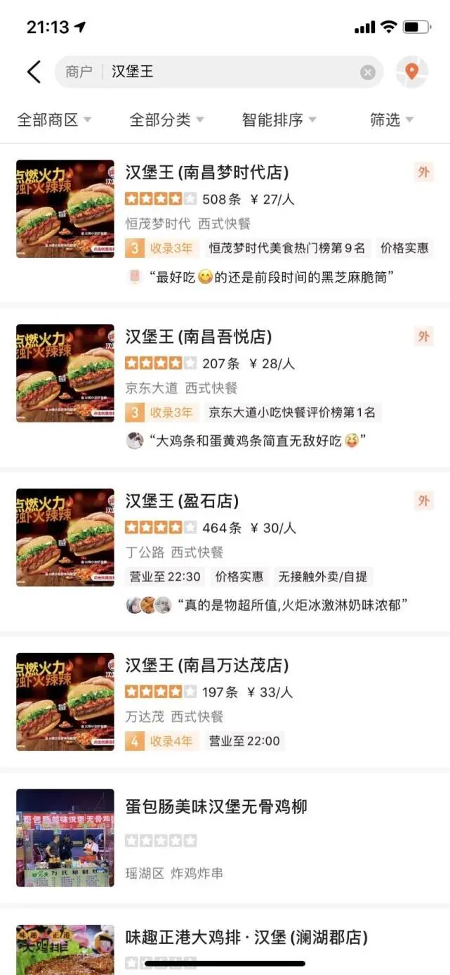 汉堡王南昌多家店铺被央视3·15晚会曝光,存在偷工减料、面包过期、篡改食品保质期等问题。截止21点13分,被点名的3家店铺在大众点评上已经搜索不到。被3·15晚会点名的汉堡王店铺包括,南昌市汉堡王红谷滩天虹店,汉堡王南昌王府井店、南昌市汉堡王铜锣湾店。腾讯财经使用大众点评,定位南昌并搜索汉堡王店铺时,这三家店铺均已消失在大众点评搜索页面,仅能通过网友的个人点评页面看到这几家店铺的痕迹,而其他店可以正常搜索。![]()